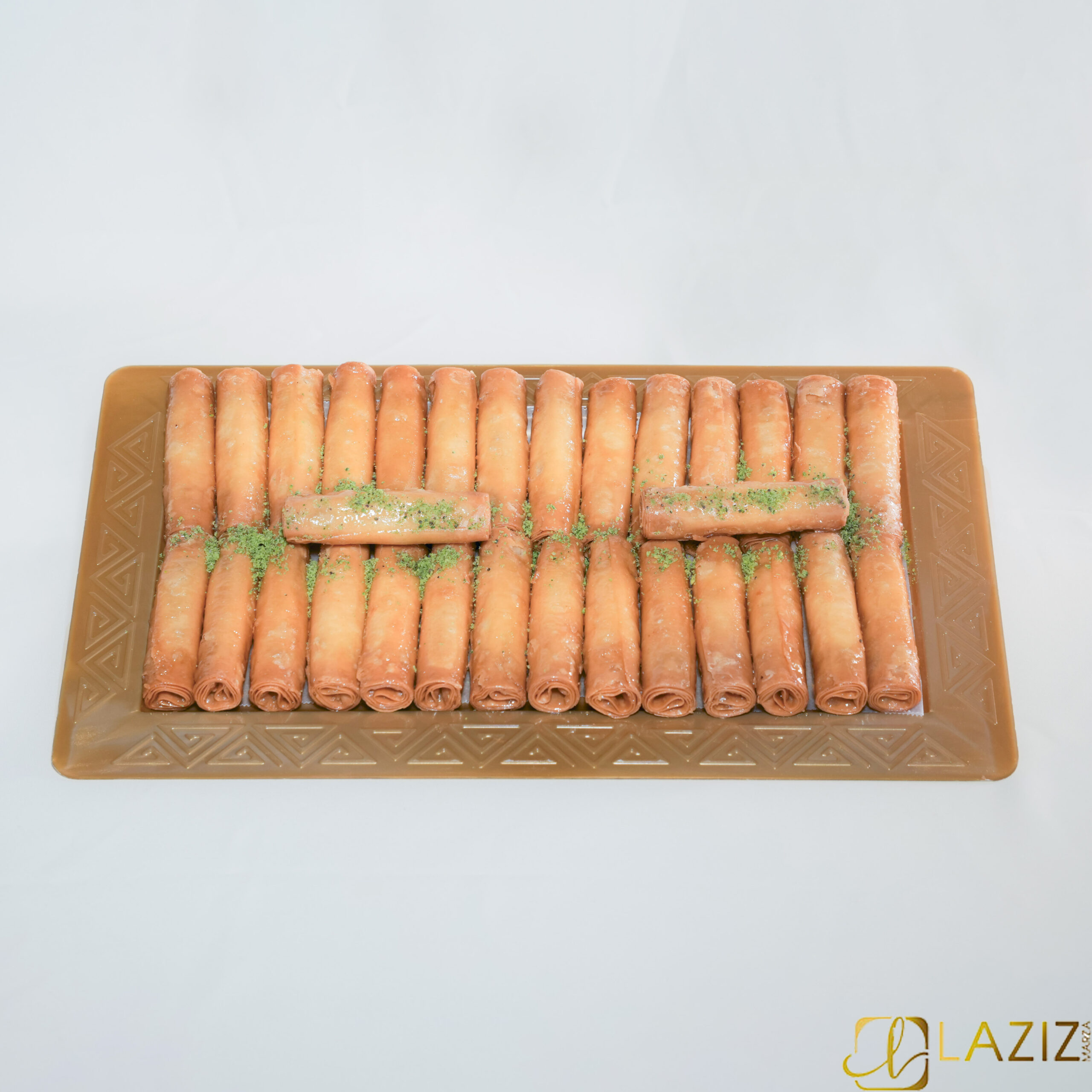 Wrapped in crispy phyllo dough and drenched in a rose-water syrup, Znoud El Sit are an irresistible dessert In this Box 28 to 32 Piece