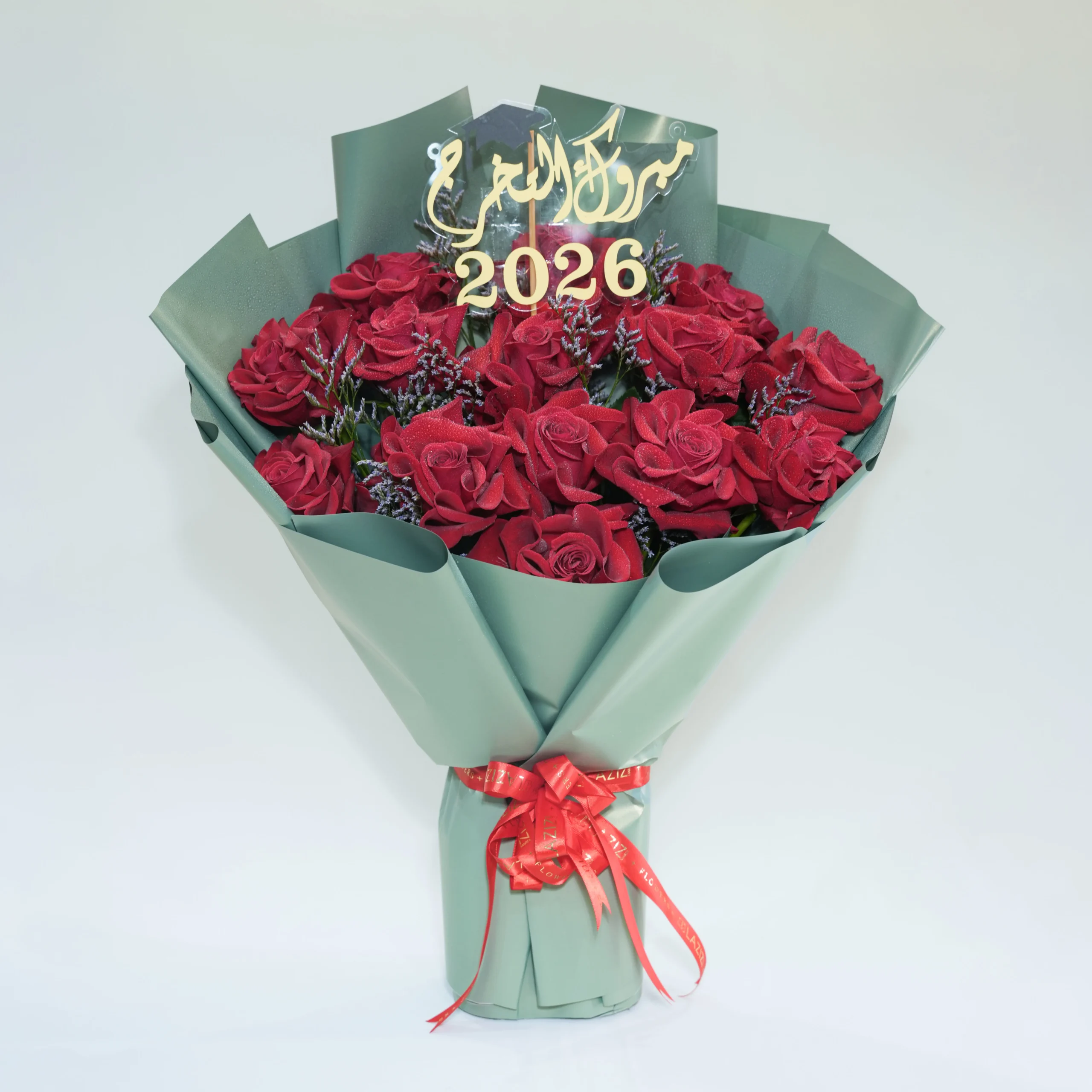 Red Rose 14, Limonium Purple 2, Graduation Stick 1